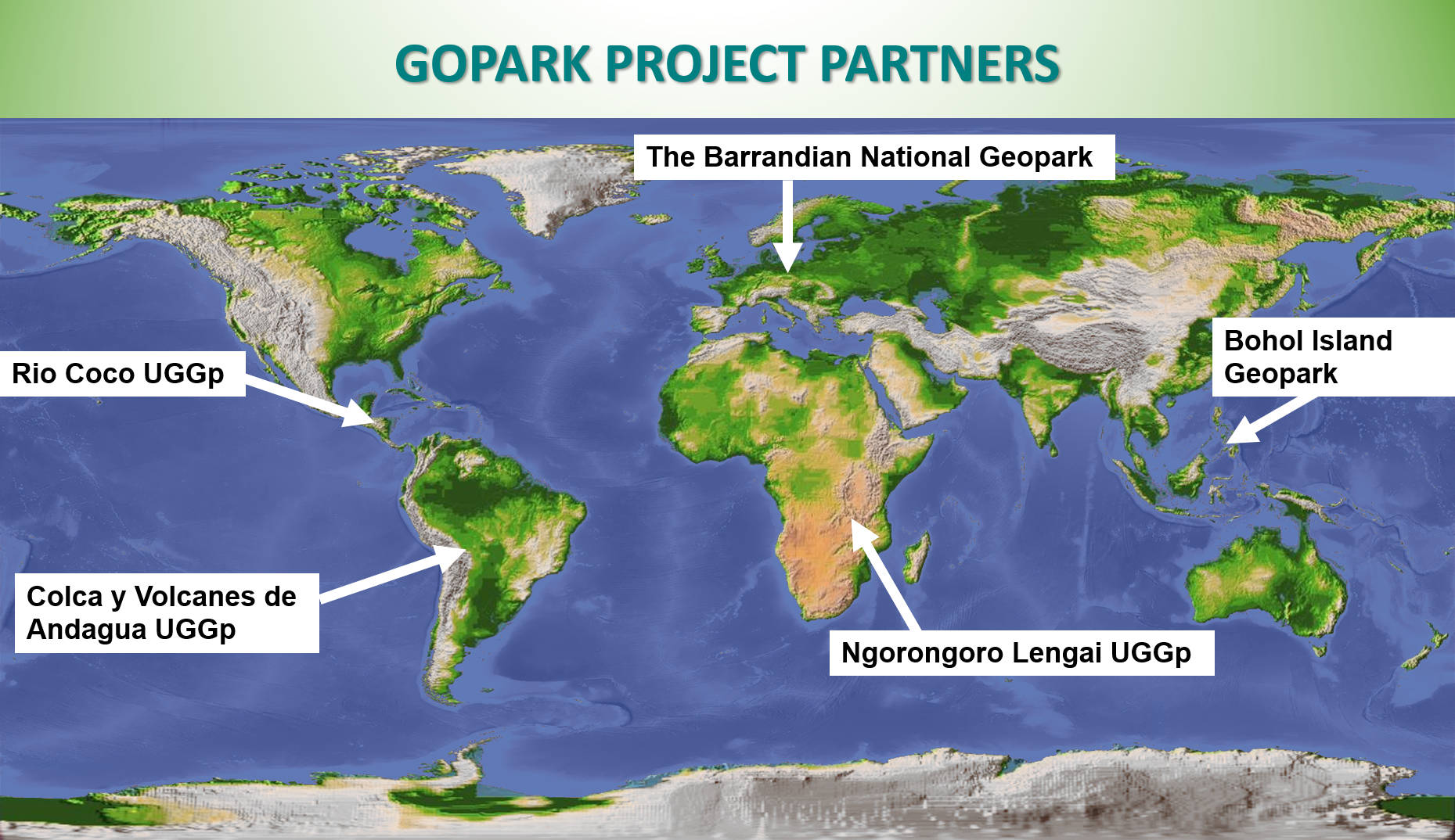 Celková rozloha geoparku 4 316,3 km2, z toho ve Středočeském kraji 2 121,2 km2, v Plzeňském kraji 1 930,3 km2 a v Hlavním městě Praha 264,8 km2. Území geoparku je rozděleno do sedmi oblastí: Praha a okolí, Berounsko, Brdy, Brdy Hřebeny, Rakovnicko, Radnicko a Plzeňsko.